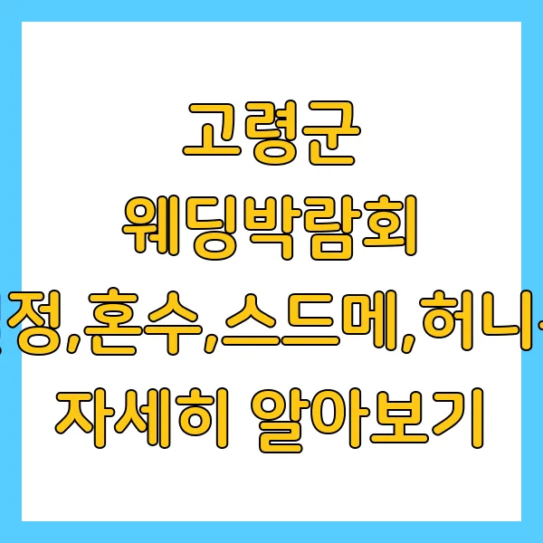 결혼 준비, 어디서부터 시작해야 할지 막막하시죠? 고민은 이제 그만! 드디어 고령군에서 웨딩박람회가 열린대요! 설렘 가득한 결혼 준비의 첫걸음을 고령 웨딩박람회와 함께 시작해 보는 건 어떠세요?